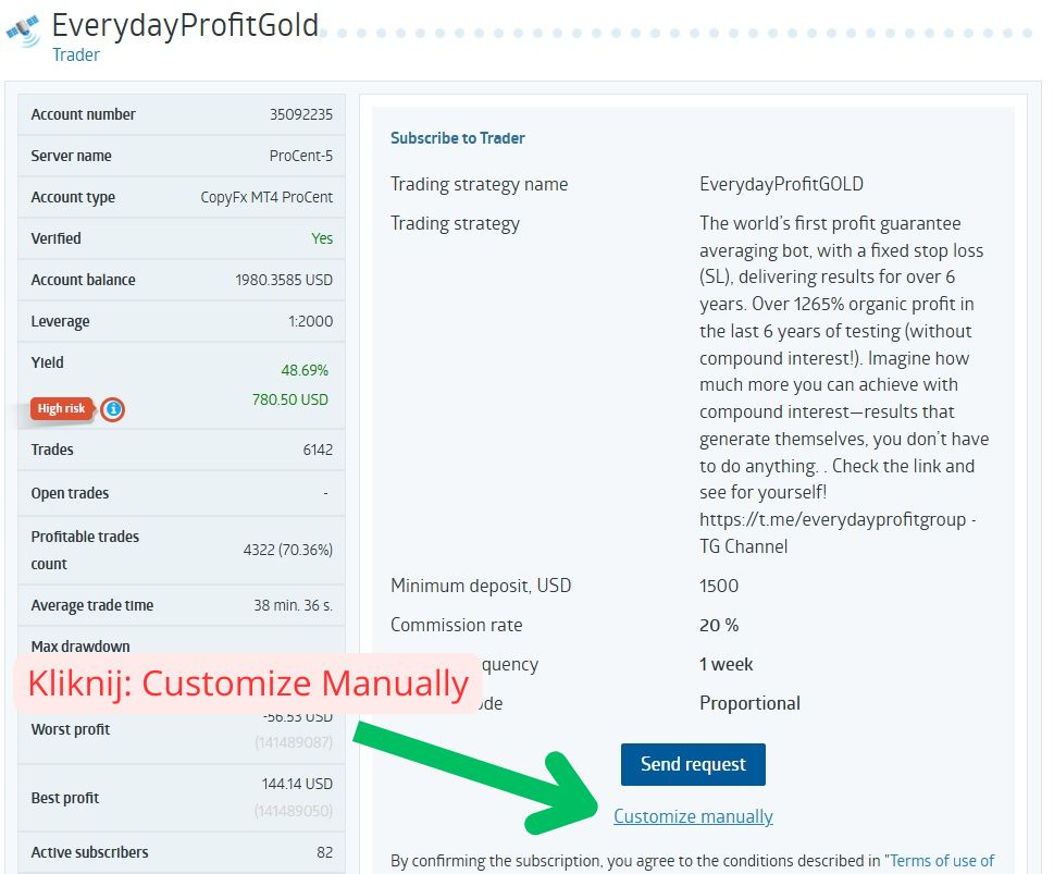 Zasil konto handlowe dowolną kwotą od 1500$ wzwyż. EverydayProfit działa poprawnie przy każdym kapitale powyżej 1500$.