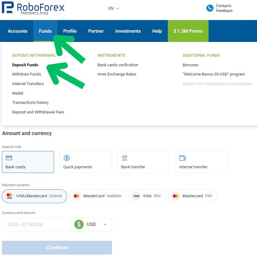 Internal transfer: Przelew wewnątrz konta Roboforex pomiędzy rachunkami.