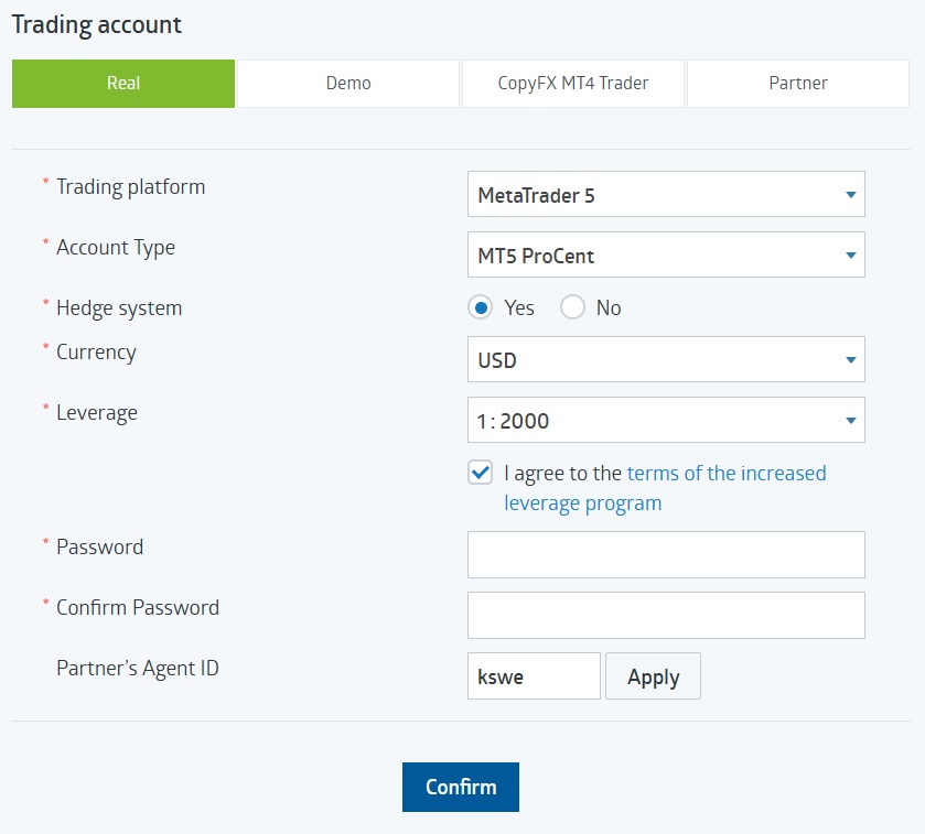 Rachunek handlowy jest wewnątrz Twojego konta Roboforex (tzw. Members Area), ilość rachunków jaką możesz stworzyć to 50. Każde z nich ma osobny numer oraz do każdego ustawiasz osobne hasło - inne niż te, które wpisujesz podczas logowania się do Roboforex.