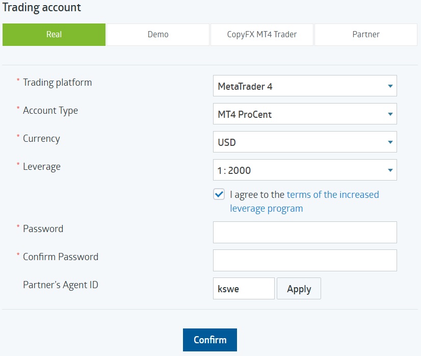 Rachunek handlowy jest wewnątrz Twojego konta Roboforex (tzw. Members Area), ilość rachunków jaką możesz stworzyć to 50. Każde z nich ma osobny numer oraz do każdego ustawiasz osobne hasło - inne niż te, które wpisujesz podczas logowania się do Roboforex.